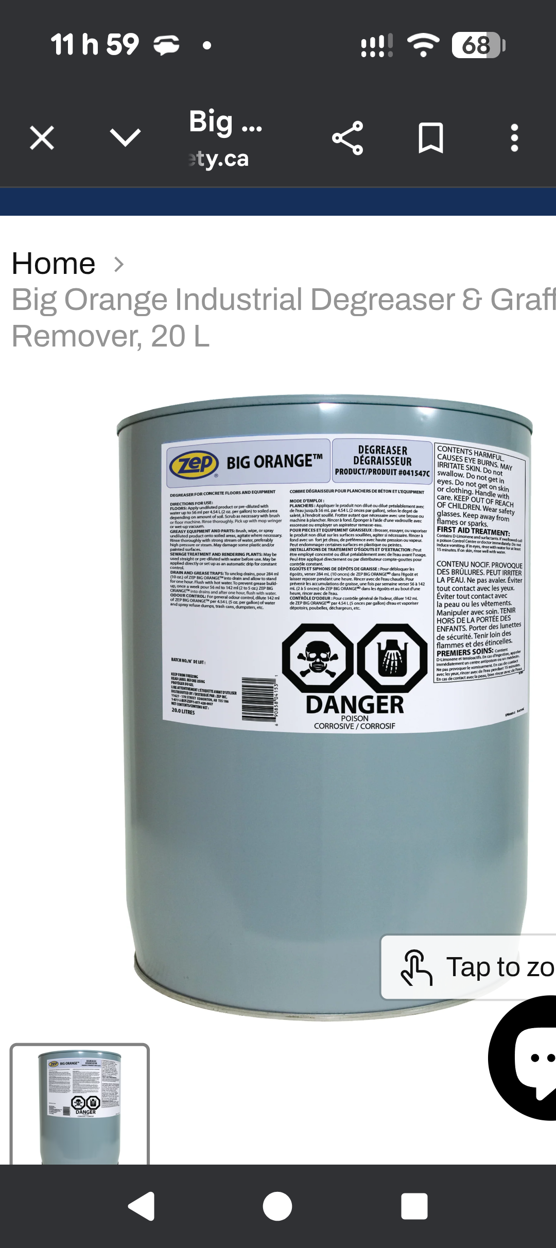 Zep Big orange Degraisseur Ultra puissant quantité=20litres